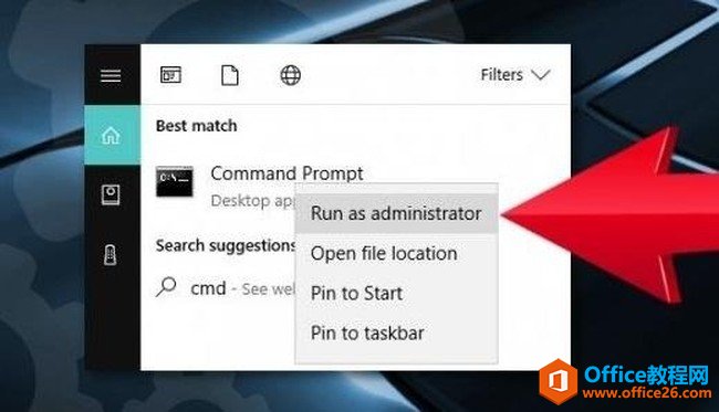 3、右击出现的搜索结果中的命令提示符,选择“以管理员身份运行”。