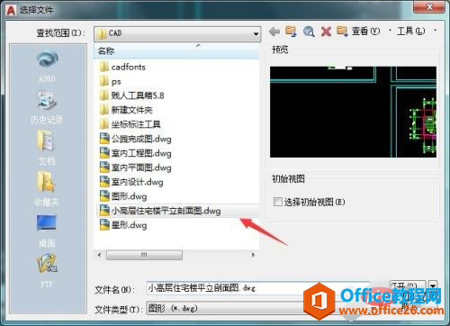 点击这个打开就会弹出选择文件对话框,我们在这个对话框里面找到我们的图形文件