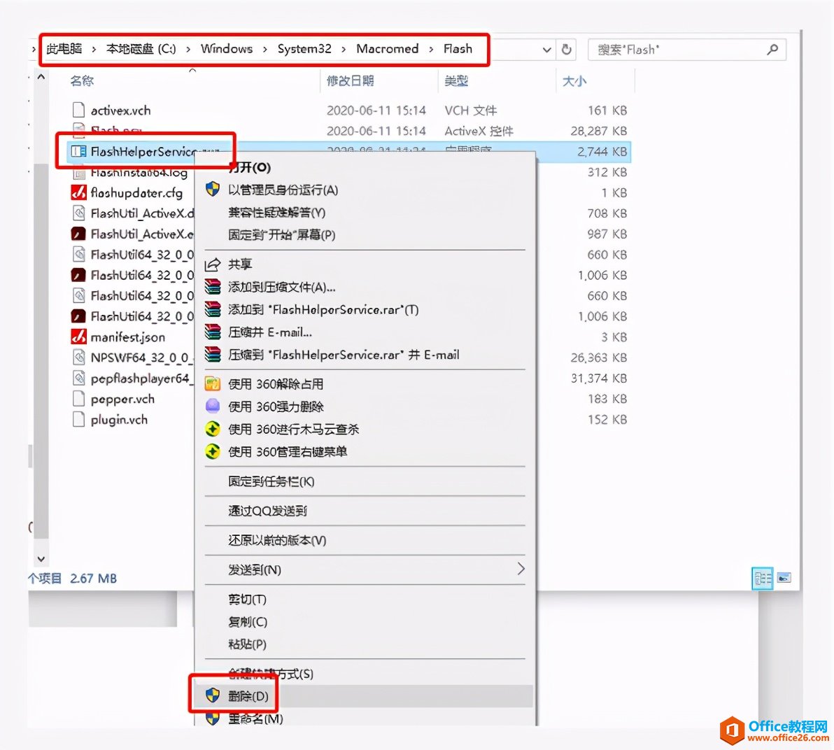 打开服务,将Flash Helper Service的这个服务右击,找到此服务的链接文件,将此文件删除。