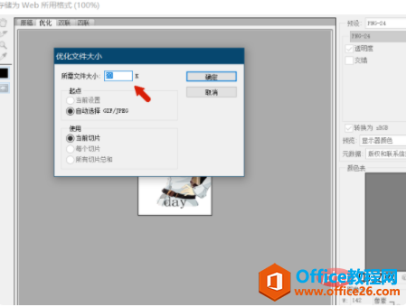 5、输入优化文件大小所需的数值,点击确定后导出即可。