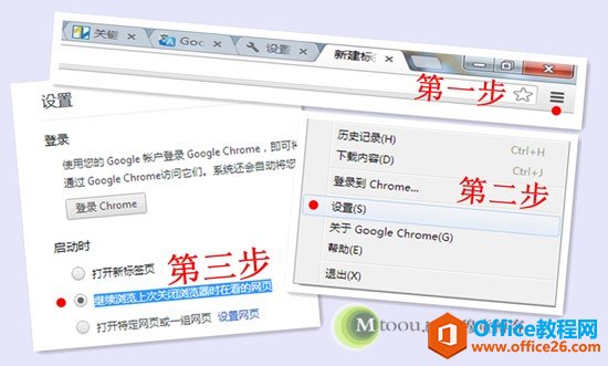 Chrome关闭时保存打开标签页面,开浏览器时访问上次打开页面详细阅读