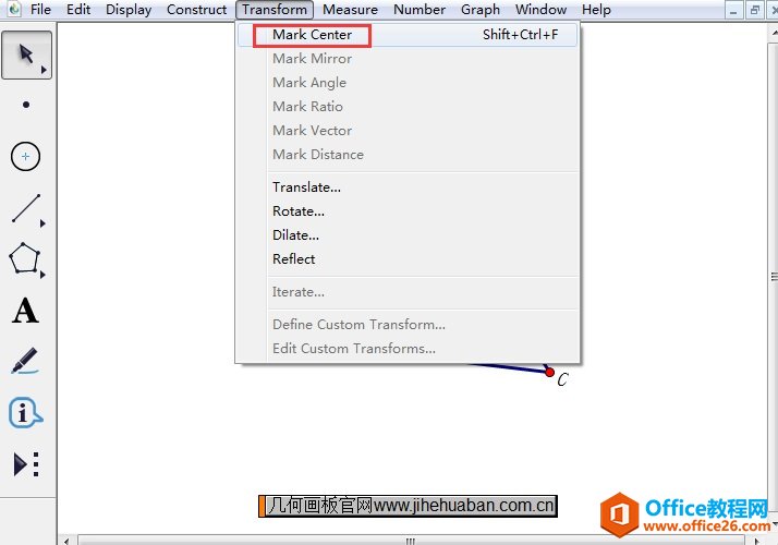 步骤三 标记点D为旋转中心。选中点D执行“变换”——“标记旋转”命令或者直接用鼠标双击点D,将点D标记为旋转中心。