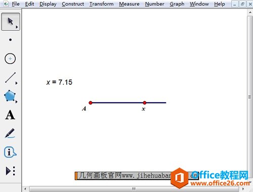 步骤六 至此,线段式控制杆制作完毕。拖动点x,可使变量x在[0,10]范围内变化。如下图所示。