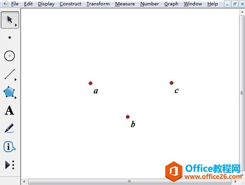 步骤一 打开几何画板,选择“点工具”,在工作区里任意点几个点(取决于你所建立的函数的参量个数,这里我们所演示的是二次函数,所以建立了三个点)。