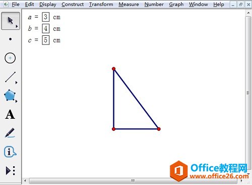 5.使用“线段工具”连接线段端点和交点,得到三边长为3,4,5的三角形。最后隐藏不必要对象即可。
