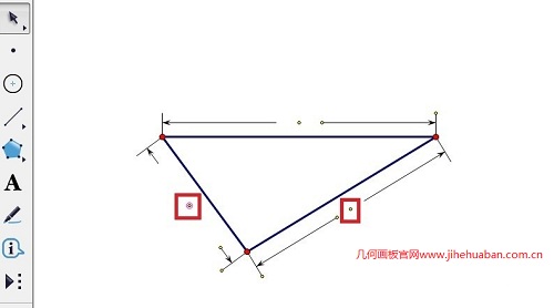 步骤一 绘制线段。打开几何画板,在侧边栏单击“线段直尺工具”,在画布上面画一条线段,进而我们画出一个三角形,如下图所示。