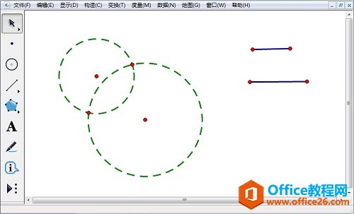 用几何画板圆工具可以轻易的画出圆,但是这样画出的相交圆无法进行调整,怎样用几何画板画相交圆,而且使所画的相交圆可调节位置跟大小呢?