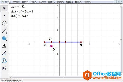 1.新建坐标系,使用点工具在 x轴上构造两个点A和B,构造线段AB。选中线段AB,选择“构造”——“对象上的点”,构造线段AB上的点P。度量点 P的横坐标xp。