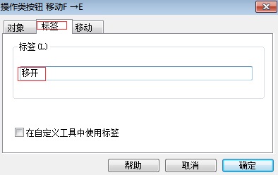 5.添加移开按钮。依次选中点F、E,在“编辑”菜单下的“操作类按钮”选择“移动”,弹出对话框,修改标签为“移开”,单击“确定”按钮。