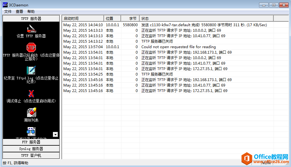 下载完成之后,还需要设置一个TFTP,这里我使用的是3CDaemon的,在D盘设置一个ciscotftp文件夹,留存放上面的AIR-LAP1131AG-C-K9胖AP文件。