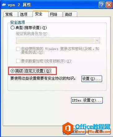 点击创建好的VPN2属性,在安全中,找到高级(自定义设置)