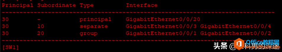 [SW1-vlan30]subordinate group 20 ;20为互通型VLAN