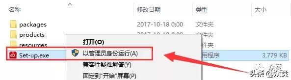 3.打开安装包文件夹后,鼠标右击“Set-up”选择以管理员的身份运行。