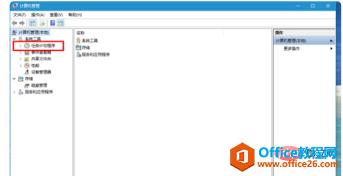 在打开的“计算机管理”窗口中,找到左侧系统工具下的“任务计划程序”菜单项