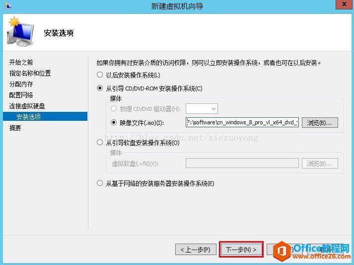 7、选择“从引导CD/DVD-ROM安装操作系统”,并选择镜像文件,这里使用win8系统,点击下一步,
