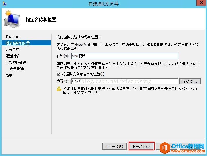3、填写虚拟机名称并选择存储位置,点击下一步,