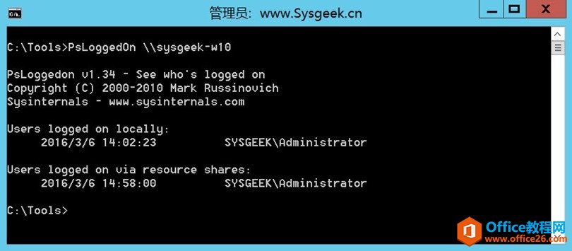PsLoggedOn 命令主要用于查看本地或远程 PC 上当前登录的用户信息,对于系统管理员来说非常实用。