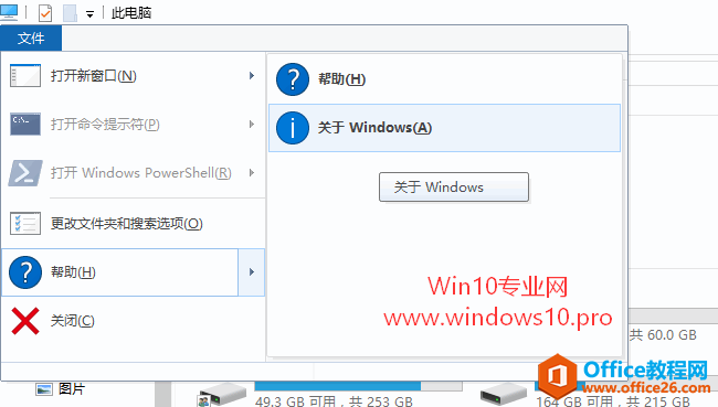 在弹出的菜单中,把鼠标移动到“帮助”菜单项,在自动展开的下级子菜单中你即可看到“关于Windows”选项。点击即可打开关于“Windows”窗口。
