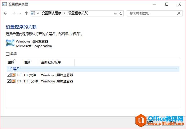 控制面板中的文件关联中照片查看器只能选择与tiff文件进行关联