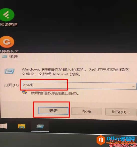 第六步:在弹出的运行窗口中输入“CMD”然后点击确定。