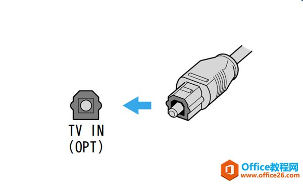 检查光纤数字电缆的接头形状及电视机和有源扬声器上的插孔形状。以正确的方向将接头插入插孔。如果以错误的方向强行插入接头,接头和插孔可能会损坏。