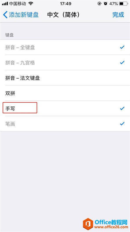 3、点击【中文(简体)】,勾选【手写】