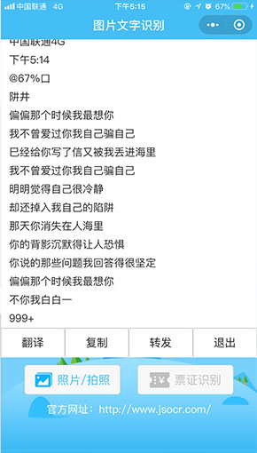 点击进入,可以看到有两种识别方法:照片/拍照,票证识别现在苹果手机还不能用,安卓可以。