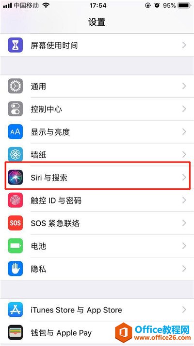 手指滑动屏幕,找到【Sri与搜索】选项,点击进入。