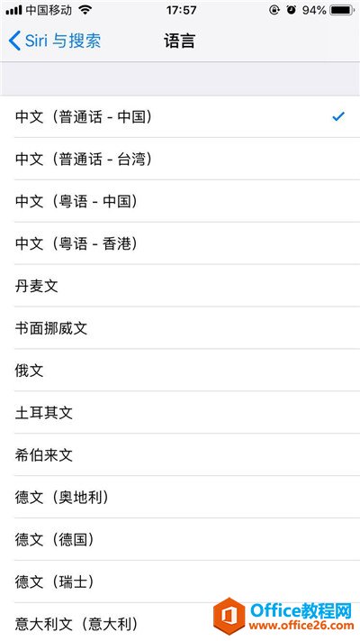 从以下选项中勾选想要siri说出来的语言就好啦。