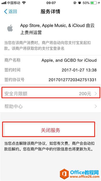 点击【关闭服务】即可,也可以选择调低相应的【安全月限额】。