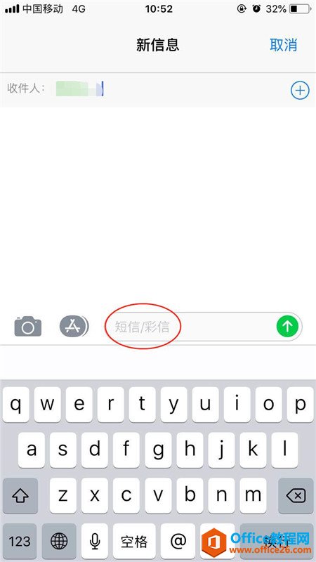 上面的步骤完成之后,我们再返回短信发送页面,就会发现“imessage信息“消失了,我们直接输入文本,点击发送出去的就是短信了。