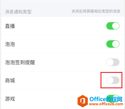 3.进入消息通知设置页面后,找到"商城"功能栏,点击即可关闭商城信息推送了.