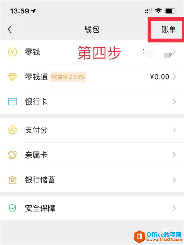 第四步:点击钱包界面右上角的『账单』功能;