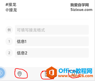 录入接龙信息时,可以按红圈所示按钮快速添加地点、电话和时间等信息。
