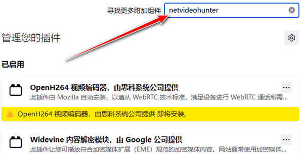 5、找到NetVideoHunter插件并安装。