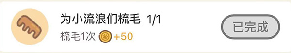 2、梳毛:每天可以为小流浪梳毛1次,完成即可获得50金币。