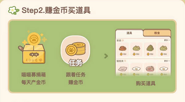 每个小毛孩变得更健康后,喵喵募捐箱的每分钟金币产量会更多,最多可累计4小时金币;金币可以用于购买道具,摆放在旅舍内供小毛孩玩耍,但同类道具仅能在旅舍内摆放1个