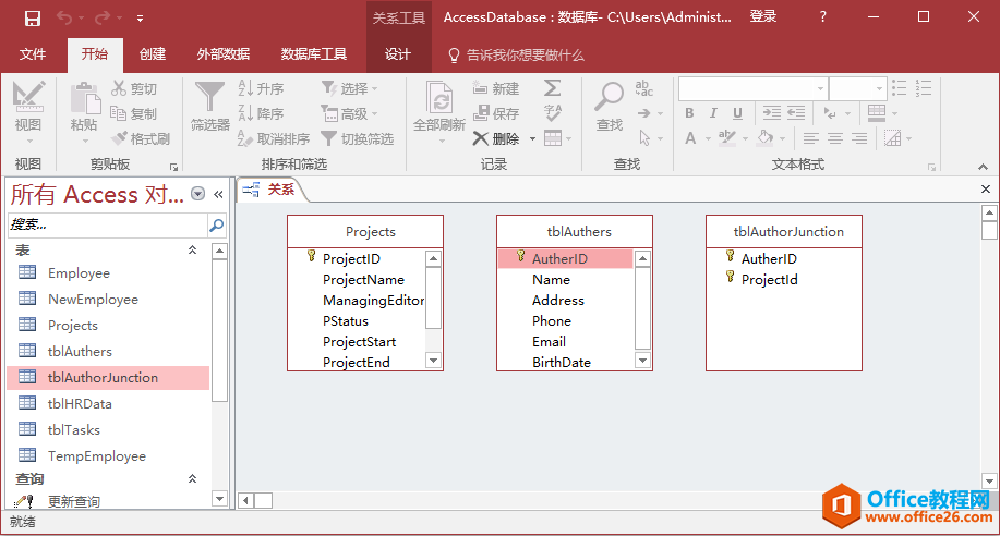 单击是,现在还需要创建一个联连表:tblAuthorJunction。 这个联连表有两个外键,如下图所示。