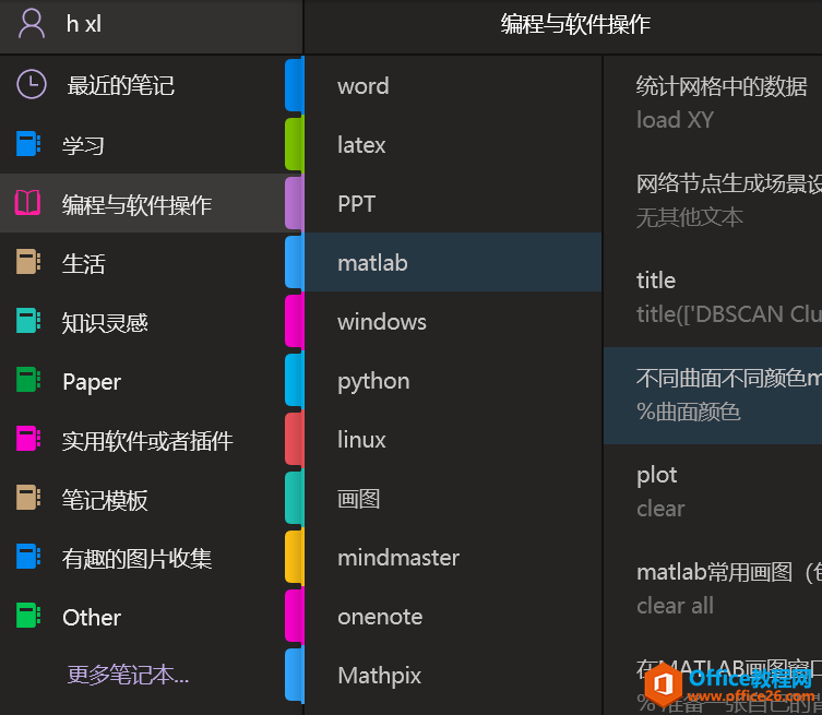 用软件做笔记的好处在于,方便记录搜索,整理资料。页面上任意位置都可以放置文字图片等。非常方便。不像其他软件,需要像word的一样,从头开始写,且插入图片位置也不好调节。 OneNote里面需要找资料的时候,输入关键词就行。 复习课程笔记的时候,按目录打开就行。另外,还一个好处,就是护眼模式, 调节为深色模式后,晚上看,不伤眼。而且字体自动根据你的页面颜色调节字体颜色。比较智能。