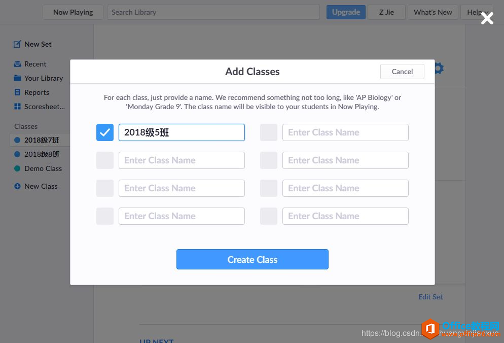 第二步:注册成功后登录界面,点击"New Class"设置班级息。