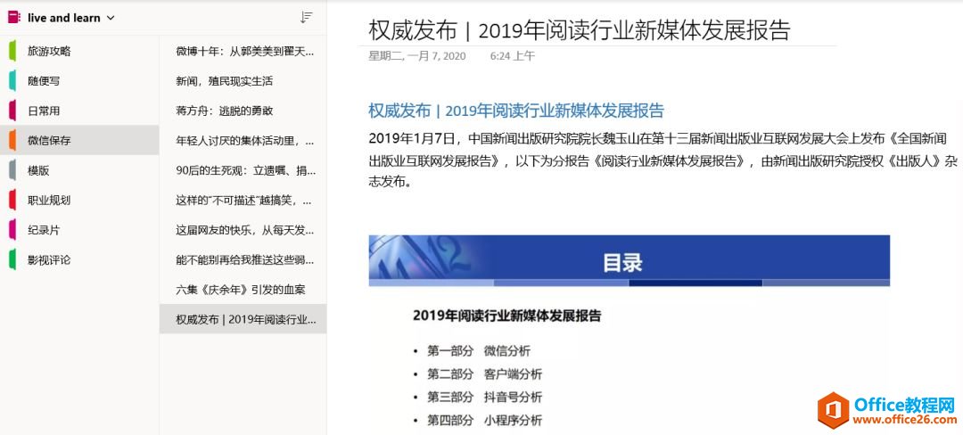 看公众号的时候经常会看到很多想要保存的精彩文章,有的跟想要研究的内容相关性比较高,就会想要存在电脑里方便以后查看。可以通过关注【微软云笔记】公众号,登录之后直接转存到OneNote里,就可以快速同步到各个客户端。不用自己麻烦地复制粘贴再排版,很ok。