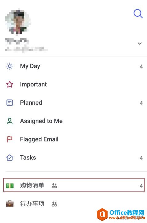 以“to-do”为例,app默认为用户添加了“购物清单组”(其他app同理,没有该分组的话,可以自己创造)。