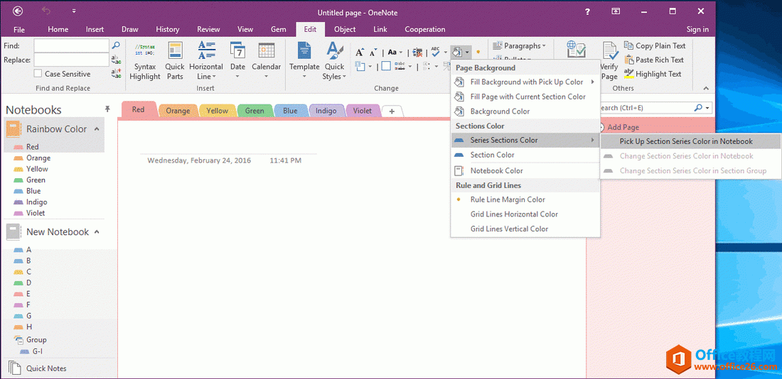 OneNote 分区颜色选取窗口彩虹颜色笔记本