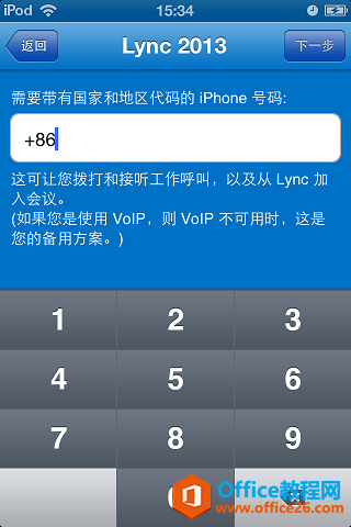 1、打开iphone手机中已装好的Lync 2013客户端软件,进入登陆界面,如图: