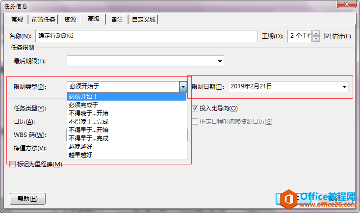 设置任务限制类型后就会强制影响进度安排,具体如下: