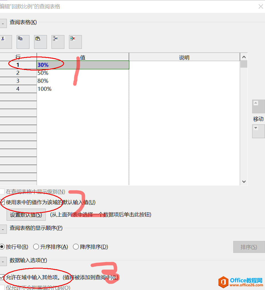 请看上图,图中标记有1、2、3的字样,“1”字样代表的是该列的列名称,可以选中重新编辑名称。“2”代表的是选中该列的格式,这里我们选择“文本”格式即可。最重要的是设置“3”字样代表的文字,也就是我们上述提到的固定值(“30%”、“50%”、“80%”、“100%”)。