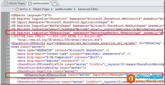 插入WebPart以后,如下图,上面有部件注册信息,下面位置有部件的引用;如果不用插入WebPart的UI,手动注册并插入WebPart也可以;