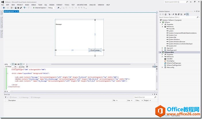 3、添加Silverlight控件,2个label和1个button,定义一下属性;