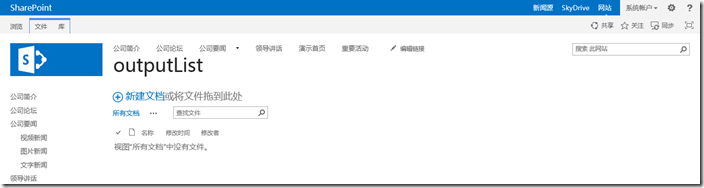 新建文档库outputList,作为输出PDF库,里面没有文件,如下图: