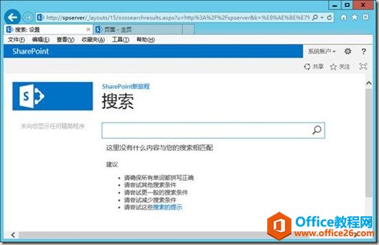 15、再试试搜索,好吧,搜索不到东西,但是不报错了,说明搜索服务配置OK了,但是,没有爬网不是。
